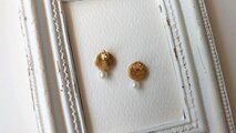 真鍮板を切り出し、表面にテクスチャーを加え淡水パールを差し込み装着しました。