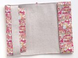 リバティの人気生地、ジェニーズリボンズ Jenny's Ribbons(ピンク)とハーフリネンの生地で新書本サイズのブックカバーを作りました。