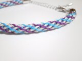3色(紫、ベージュ、水色)16本の糸を使用した、老松組です。