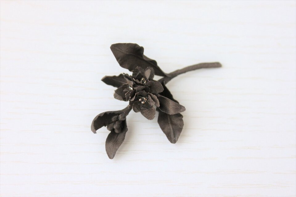 コットンシルクの摘み花コサージュブローチS<チョコレートブラウン>CY032S-T8DB