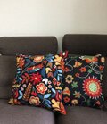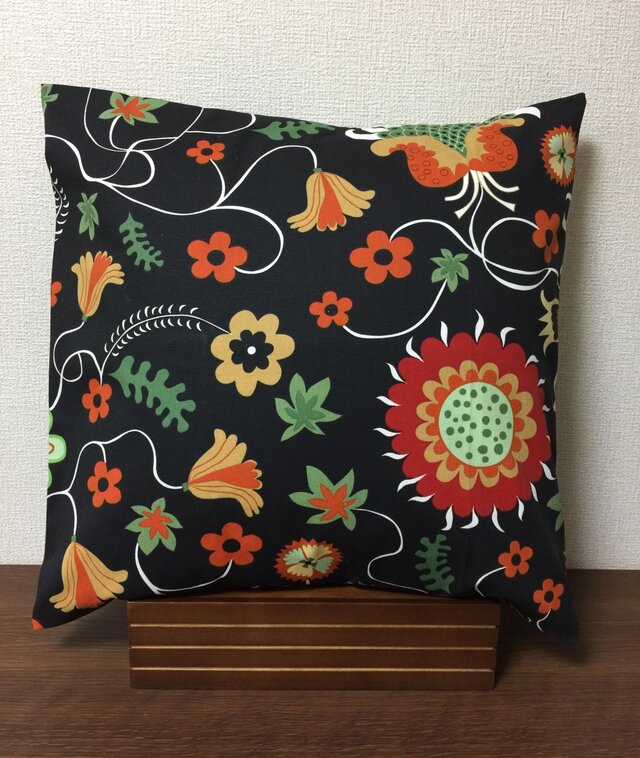 とてもカラフルでカワイイ花柄ですが、バックが黒地なので ちょっとシックなアジアン風にも思えるクッションカバ―です。