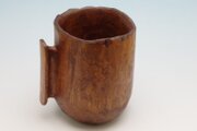 中径木をそのままくりぬいたカップです。指の入るような取っ手にはできないので、ちょっと変わった取っ手になりました。