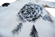 日本の美しい花、ボタンをレーヨンの上質なカットソーに描きました。