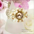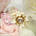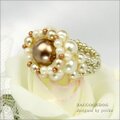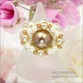 ビーズ,リング,コスチュームジュエリー,チェコビーズ,ビーズアクセサリー,ビーズアクセ,ブラウンゴールド,パール,ビーズリング,ガラス,大粒パール,シック,プレゼント,贈り物,大人のリング,和装,シルキーホワイト,茶