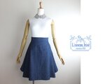ヘリンボーンデニムで、裾のラインがおもしろいスカートを仕立てました。