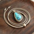 こちらは、優しいブルーグリーンが綺麗なクリソコラを使ったネックレスです。