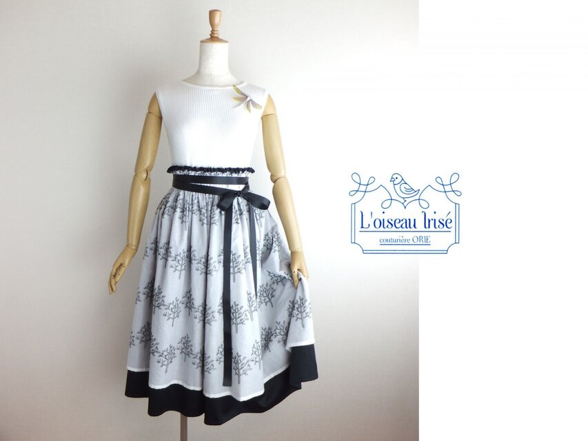 森の刺繍が可愛い薄手のやわらかコットンと、下地にサテンを組み合わせました。