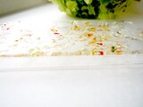 ドライフラワーの花びらをを樹脂でコーティングして仕上げています。