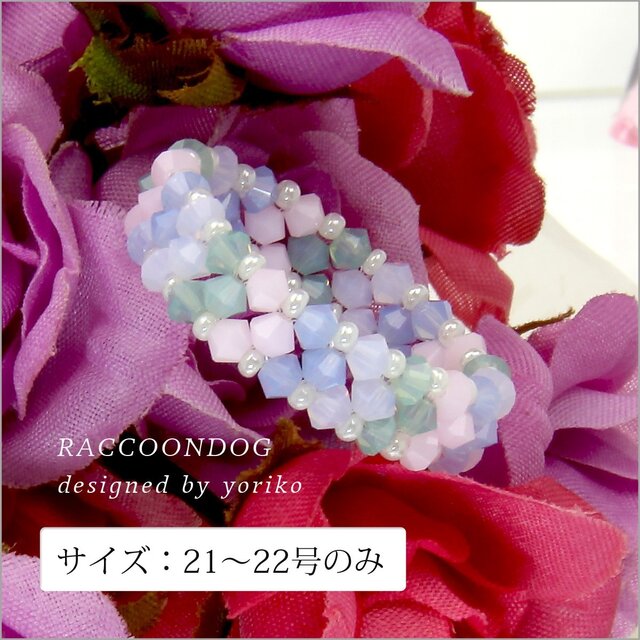 こちらのリングはスワロフスキー4色で柄編みになってます。