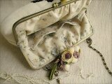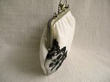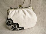 ミルクリネンにアンティークブラックレースをのせたがま口バッグ