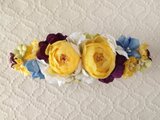 イエローのバラを中心に、ホワイトやパープルなどの小花でカラフルな色合いです。