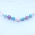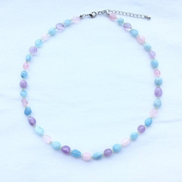 ローズクォーツ、ラベンダーアメジスト、アクアマリンの組み合わせ。
