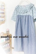 リバティ限定色Meadowメドウ ブルーと綿麻ハーフダンガリーリネンブルーでお作りしましたヨーク切り替えドルマンスリーブのチュニックワンピース巻きロックフリル仕上げです。