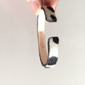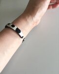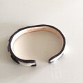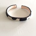 ダルメシアン柄の厚手牛ハラコとヌメ革(牛タンロー)をスチール製の芯に革専用接着剤で張り付けたシンプルなバングルです。裏にヌメ革にしてより本革をアピールしました。
