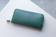 姫路産アラバスタレザー ラウンドファスナー長財布 牛革 グリーン 緑 aw-15hn