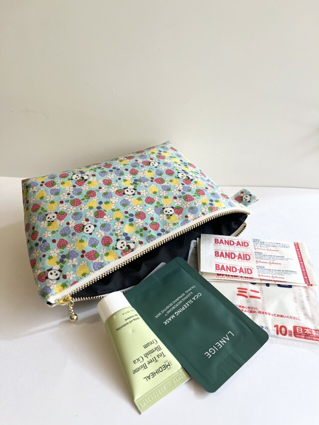 今回は少し小さめのポーチでしたが、細部まで丁寧に作られていて素晴らしいです。生地はかわいい柄が多く、毎回楽しみにしております。ありがとうございました。