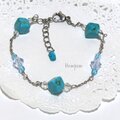 キューブ型のターコイズにクリアカラーのスワロフスキーが光る爽やかなブレスレットです。