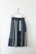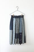 青系のお着物のはぎれをたっぷりと使って、パッチワークギャザースカートを作りました。
