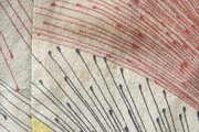 富士山のような、花火のような、とても斬新なテキスタイルのお着物から作ったプルオーバーです。なかなかない個性的な色味と模様、ぱっと見て「ツモリチサト」っぽい、と思いました笑