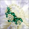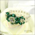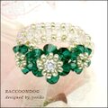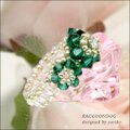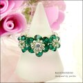 四大宝石の1つのエメラルドカラーのスワロフスキーで、お花のリングを編み上げました。
