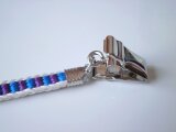 ハットクリップを3色(青、紫、オフホワイト)16本の糸を使用し、組み上げました。
