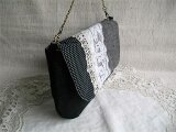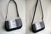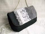 黒リネンとアンティークレースを使ったフラップバッグ