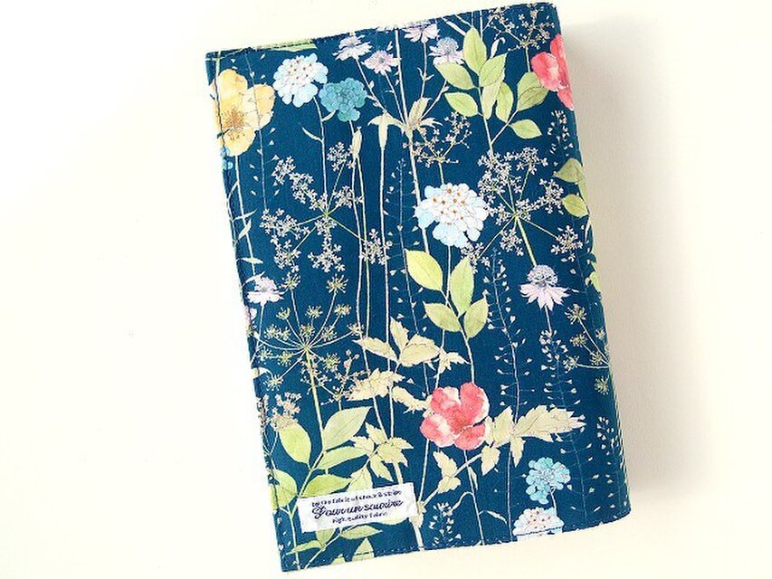 リバティの人気生地、イルマ Irma(ネイビー)とハーフリネンの生地でビジネス書サイズのブックカバーを作りました。