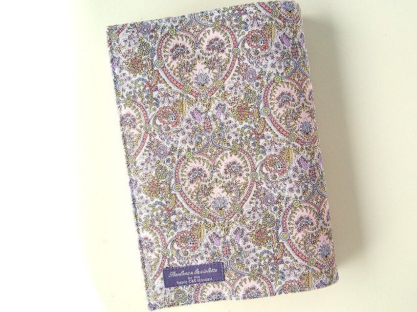 リバティの人気生地、キティグレース Kitty Grace(ピンクブルー)とハーフリネンの生地でビジネス書サイズのブックカバーを作りました。
