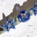 深いブルーのシェルとヒトデのモチーフでヘアクリップを作りました。