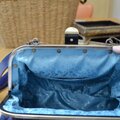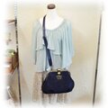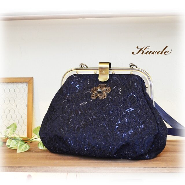 紺色の革にレースが貼り合わされた珍しいタイプの革でバッグを作りました。