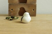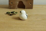和菓子屋さんからゆずりうけたひよこまんじゅうの型にひとつひとつ土を込めて、ちいさなひよこを作っています。こちらは人気のシマエナガ。デスクや棚に並べてと飾っておくと、かわいいかなと思います。