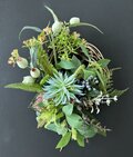 花材:アーティフィシャルフラワーエケベリア・カランコエ・パームファーン・アガベジュエル・セダム・ユーカリトランペット・ベリー・シダー・アジアンタム・姫リョウブ・ユーカリなど