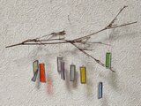 ステンドグラスの小さな短冊を黒竹の小枝に下げた壁飾りです。
