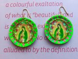 力仕事とペイントで、一つ一つ楽しくつくっています。直径は、3.7㎝ぐらい。イヤリングパーツに変更も可です。ご相談ください。