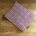 オーバーショットと言う伝統的な織り方でしっかりと織り上げた手織り布を華やかなポーチに