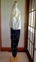 濃紺色に3種類の白い模様の浴衣からのリメイクです。