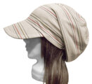 つば広ルーズキャスケット◆綿麻ボーダー ジャガード織ニット/ベージュ系 ◇紫外線対策・ゆったりサイズ・小顔効果・オールシーズン◇