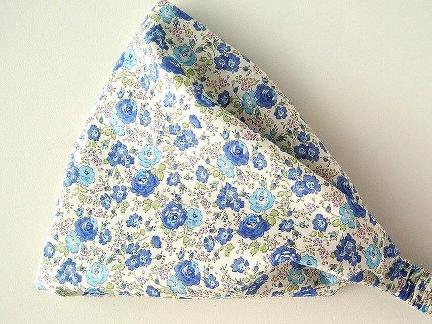 リバティの人気生地、フェリシテ Felicite(ブルー×ライトブルー)の生地で幅広のヘアバンドを作りました。