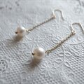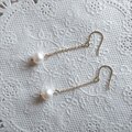 ちょこんと淡水パールを一粒添え、ロロチェーンで吊して、シンプルでかわいいピアスが出来ました。