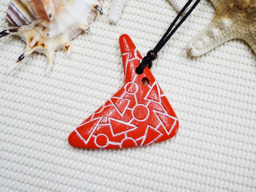 形も色もサイズもバラエティ、ユニークなアートペンダントです。