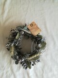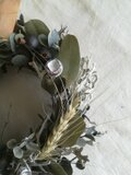 プリザーブドのユーカリとドライのダスティミラーのリースです。