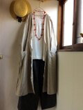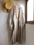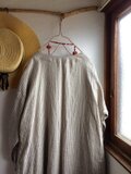 M様ご予約品 リネン100 シックストライプアトリエコート 生成り×ネイビー