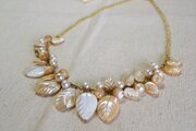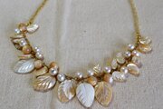 愛らしいリーフの形をした白蝶貝 マザーオブパールを使ったネックレスです。