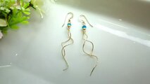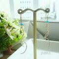 夏らしい爽やかなブルーアパタイトに、グリッターワイヤーでウエーブを作りぶら下げました。( ・∇・)