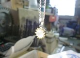 小さな手作り硝子をミルククラウンの石枠に入れました。