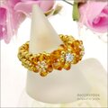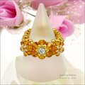 琥珀色の花【スワロフスキートパーズとジルコニア ビーズリング】《ビーズアクセサリー》