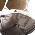 持ち手と入れ口のホワイトイタリアンレザーがアクセント。
