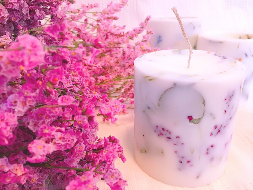 ボタニカルキャンドル*アロマキャンドル*100%ソイワックス*ドライフラワー*リモニューム*ラベンダー*ユーカリ*