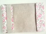 リバティの人気生地、フェリシテ Felicite(レッドピンク)とハーフリネンの生地で文庫本サイズのブックカバーを作りました。