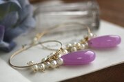 パープルジェード パール ピアス 誕生日 クリスマス 母の日 プレゼント ギフト シンプル 天然石 パワーストーン 結婚式 披露宴 二次会 春 初夏 夏 開運 ジュエリー アクセサリー カラーストーン ストーン フォーマルアクセ パール 真珠